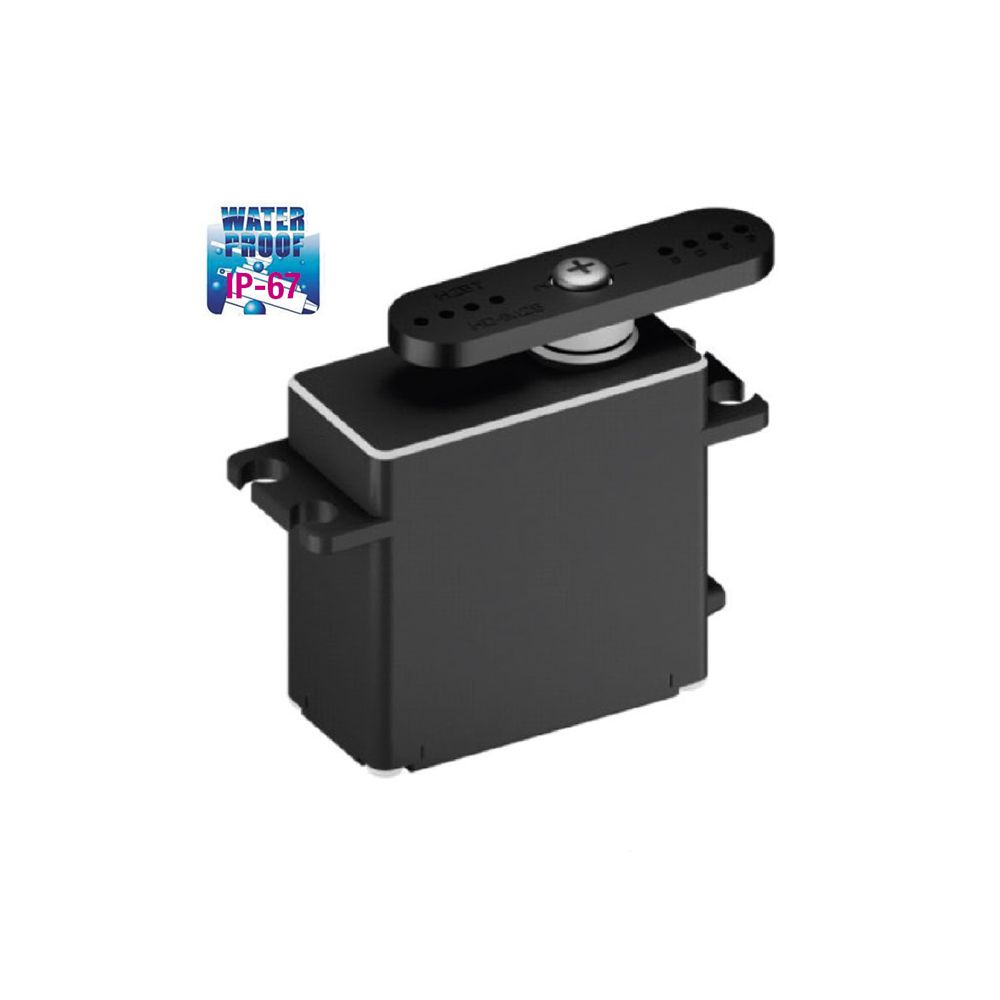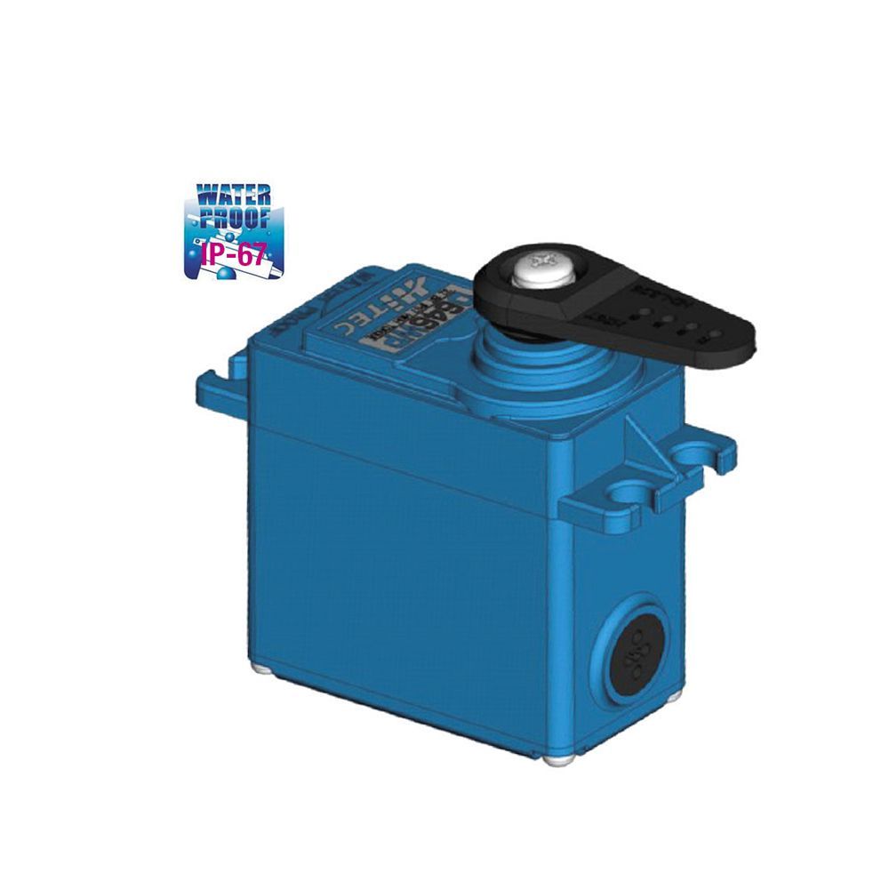 With high torque, dual ball bearings and metal gears, the D646WP boasts an IP67 rating, ranking it amongst the most durable and reliable servo in its class. Its metal brush motor and wide voltage range delivers ultra reliability for industrial applications exposed to wet conditions.