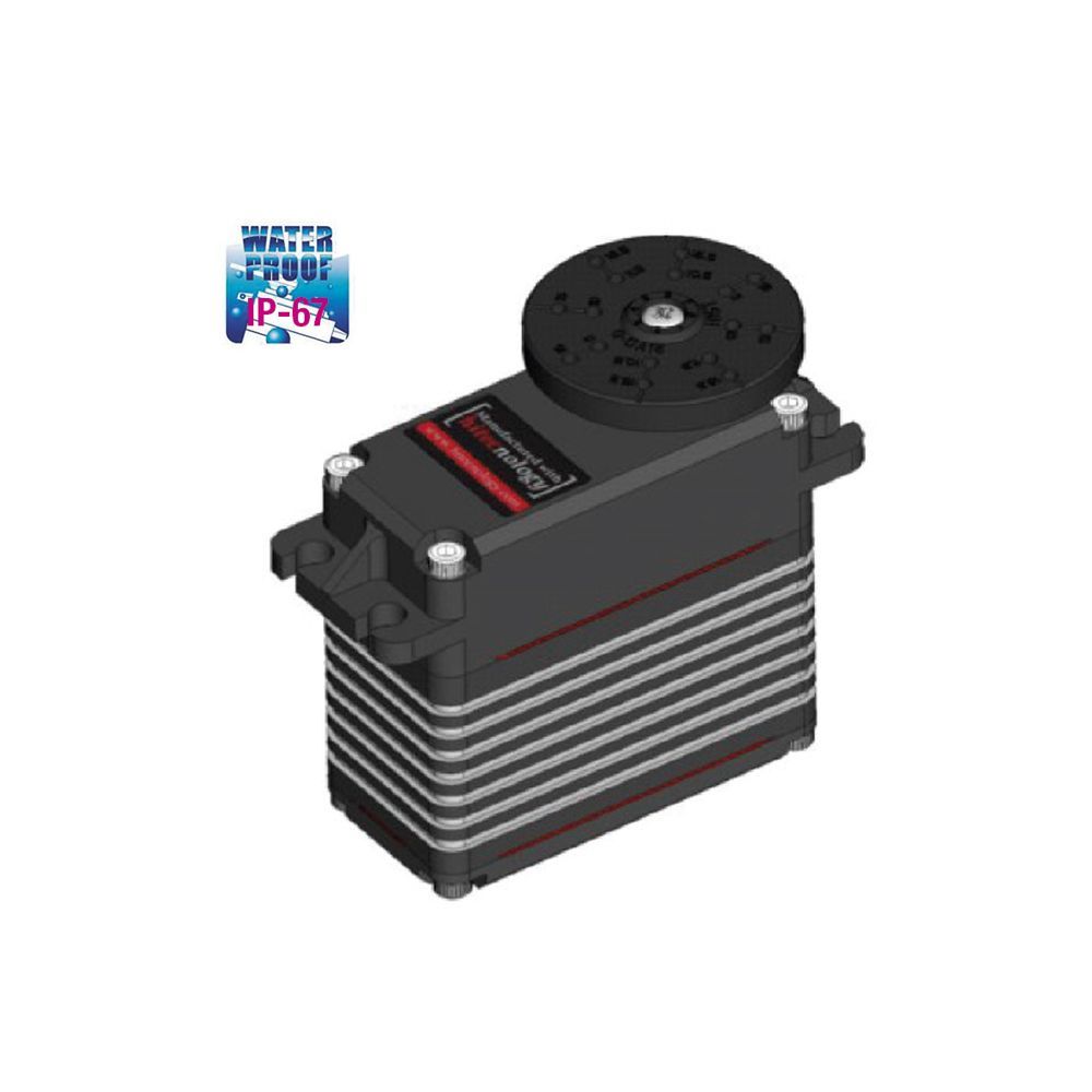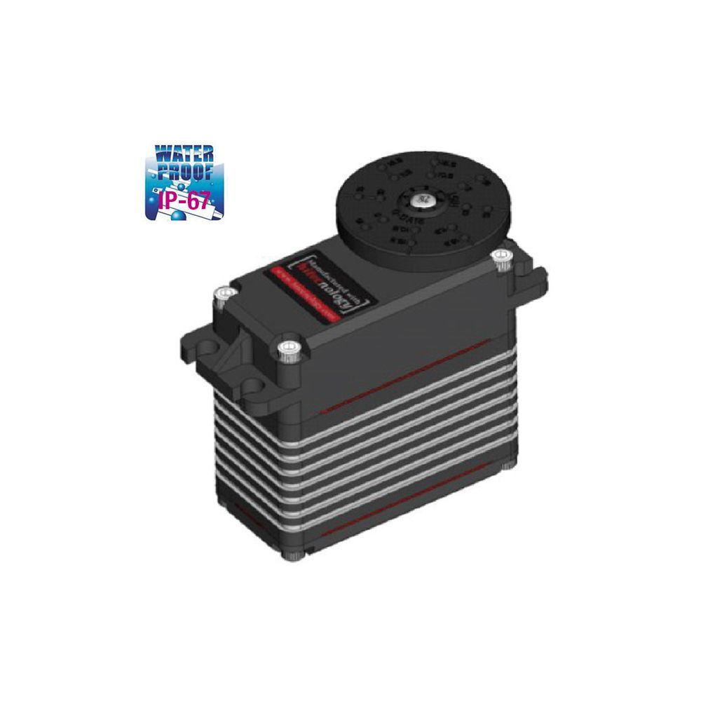 Our low profile DB777WP is a 21mm, Steel gear industrial actuator engineered with an ultra-efficient brushless motor, high-resolution digital and an all-aluminum, IP-67 rated waterproof case. Its superior torque, rapid response and premium-quality construction make this servo the perfect choice for commercial applications needing high performance in company spaces.