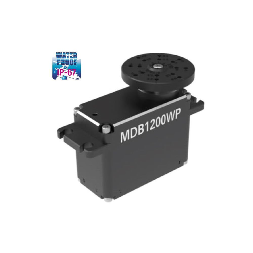 Our MDB1200WP industrial actuator offers a contactless magnetic encoder, brushless motor and IP67-certified water & dust-proof protection, making it suitable for many demanding industrial applications. This 30mm powerhouse delivers over 1500 oz-inches of torque at 7.4V and features an aluminum alloy case to dissipate heat, two ball bearings and five hardened steel gears, and PWM control protocol. Program numerous parameters to optimize the installation and performance for your industrial applications.
