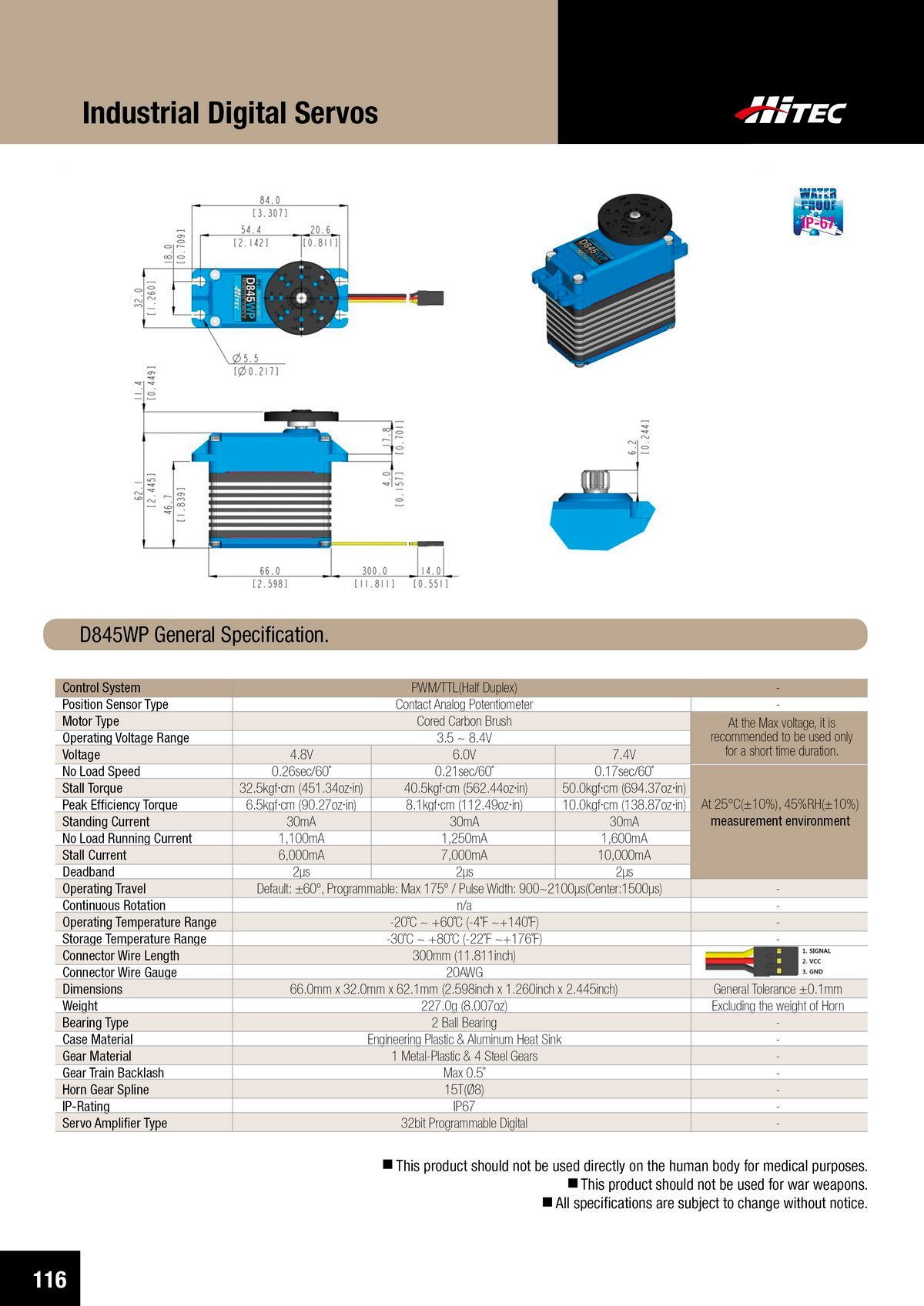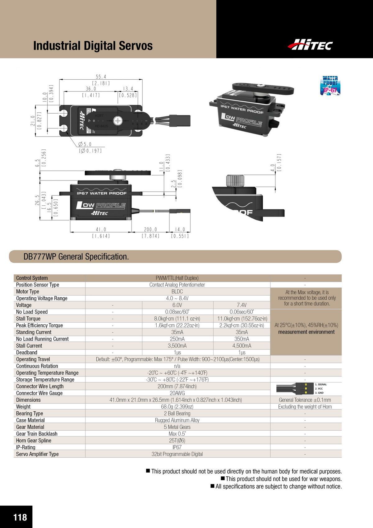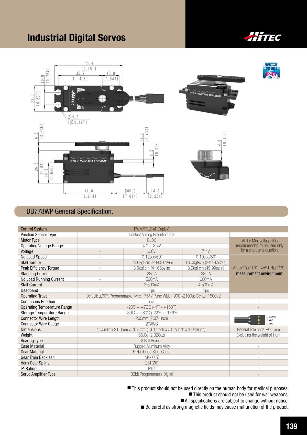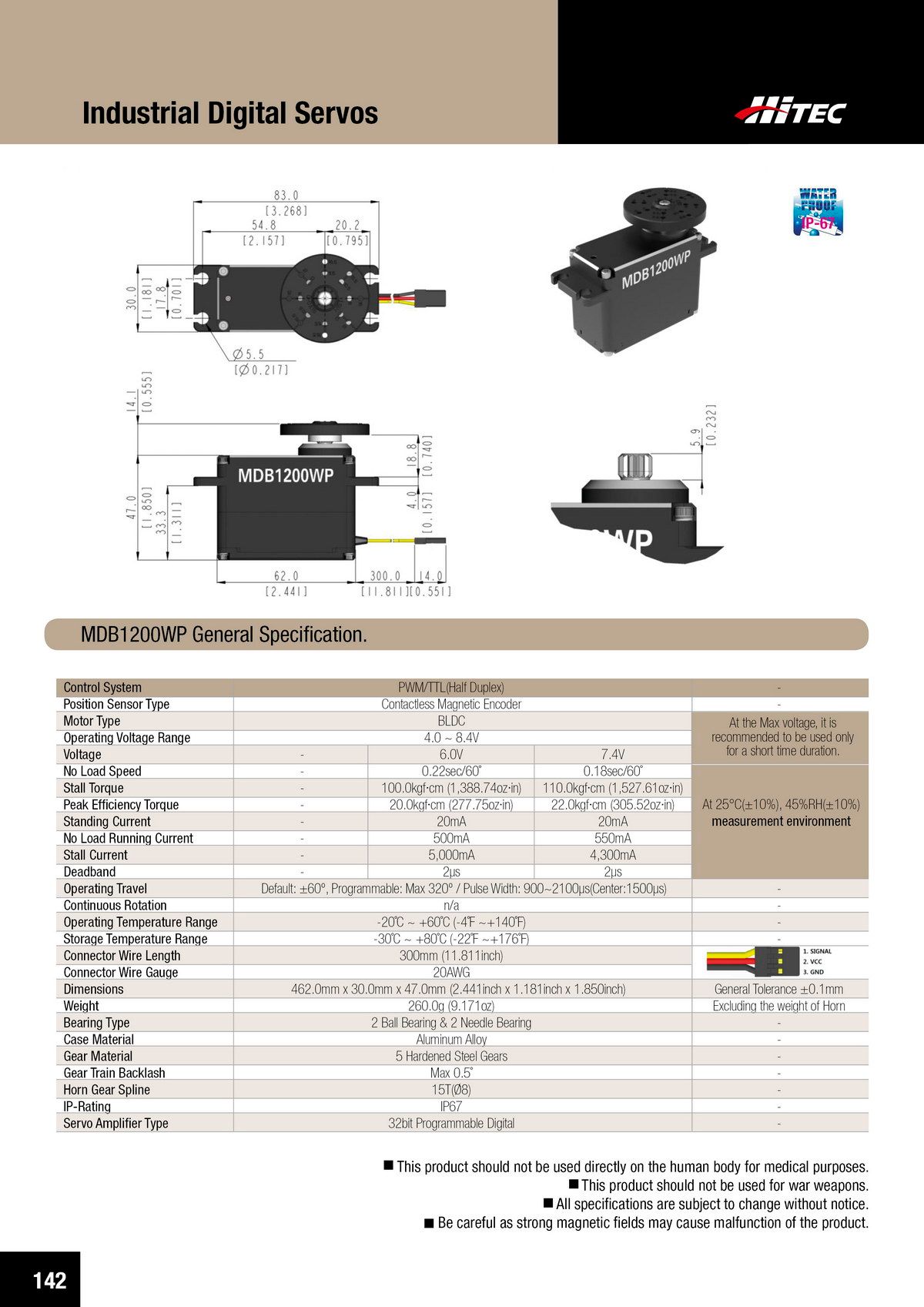 PDF DOWNLOAD21mm, Brushless, Low Profile, High Voltage, Steel Gear, Waterproof Actuator (7.4V)