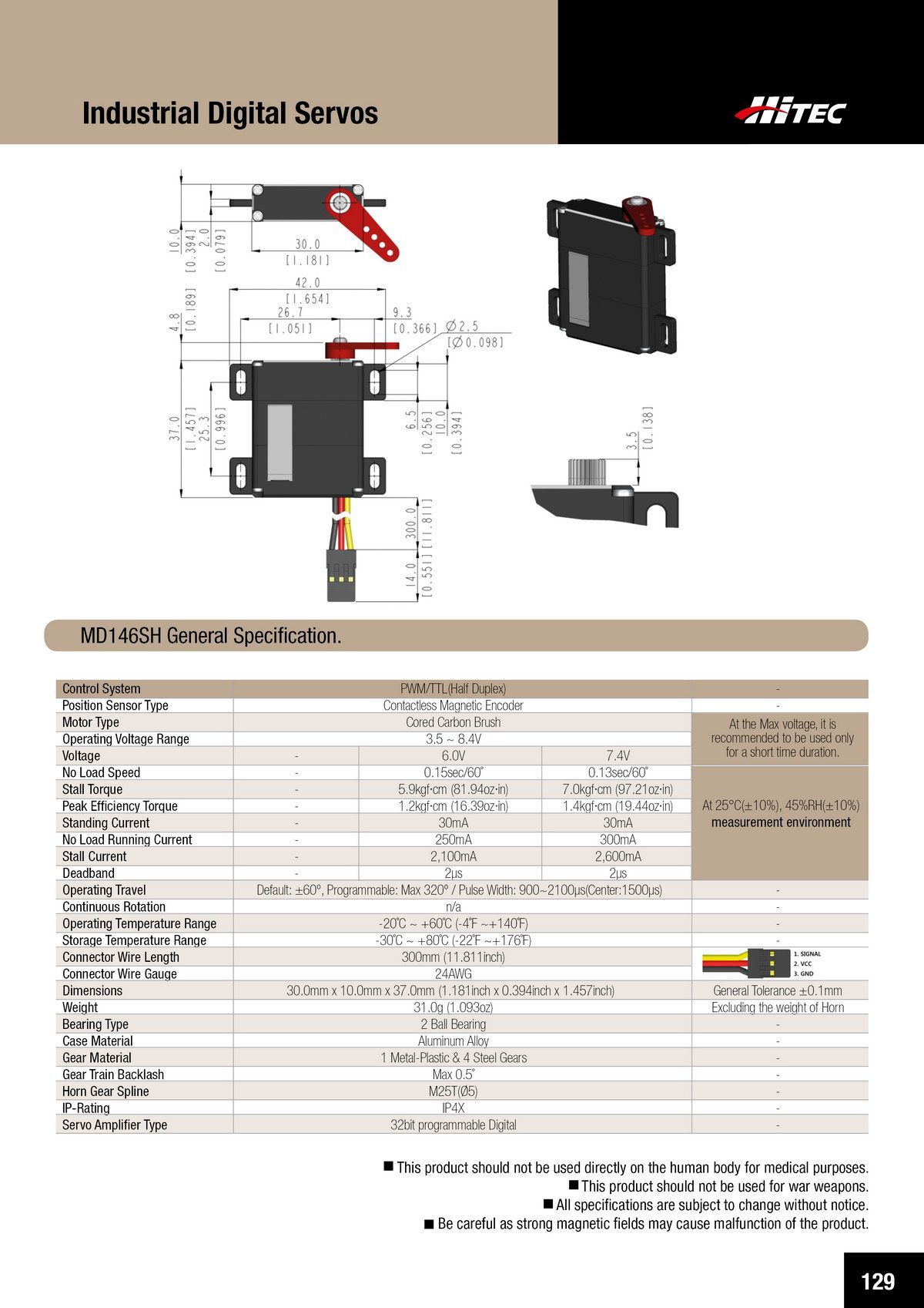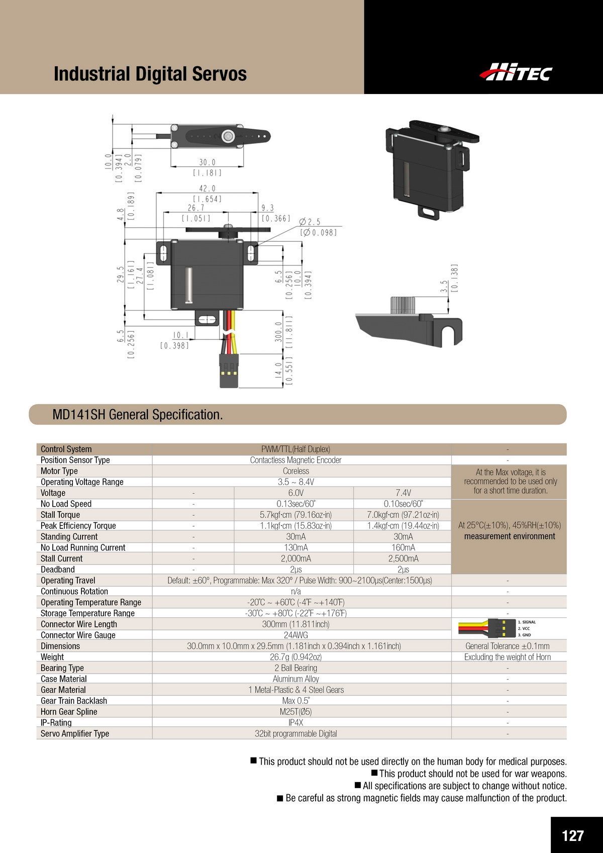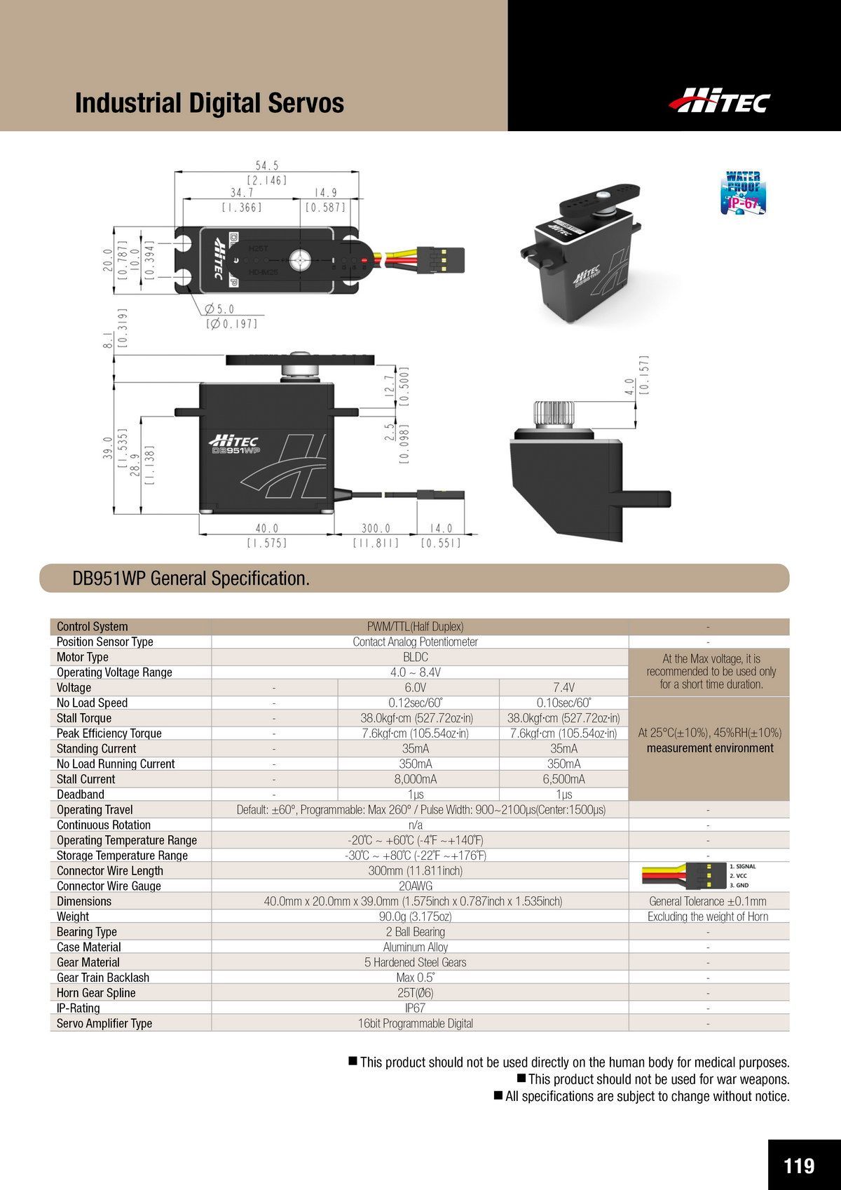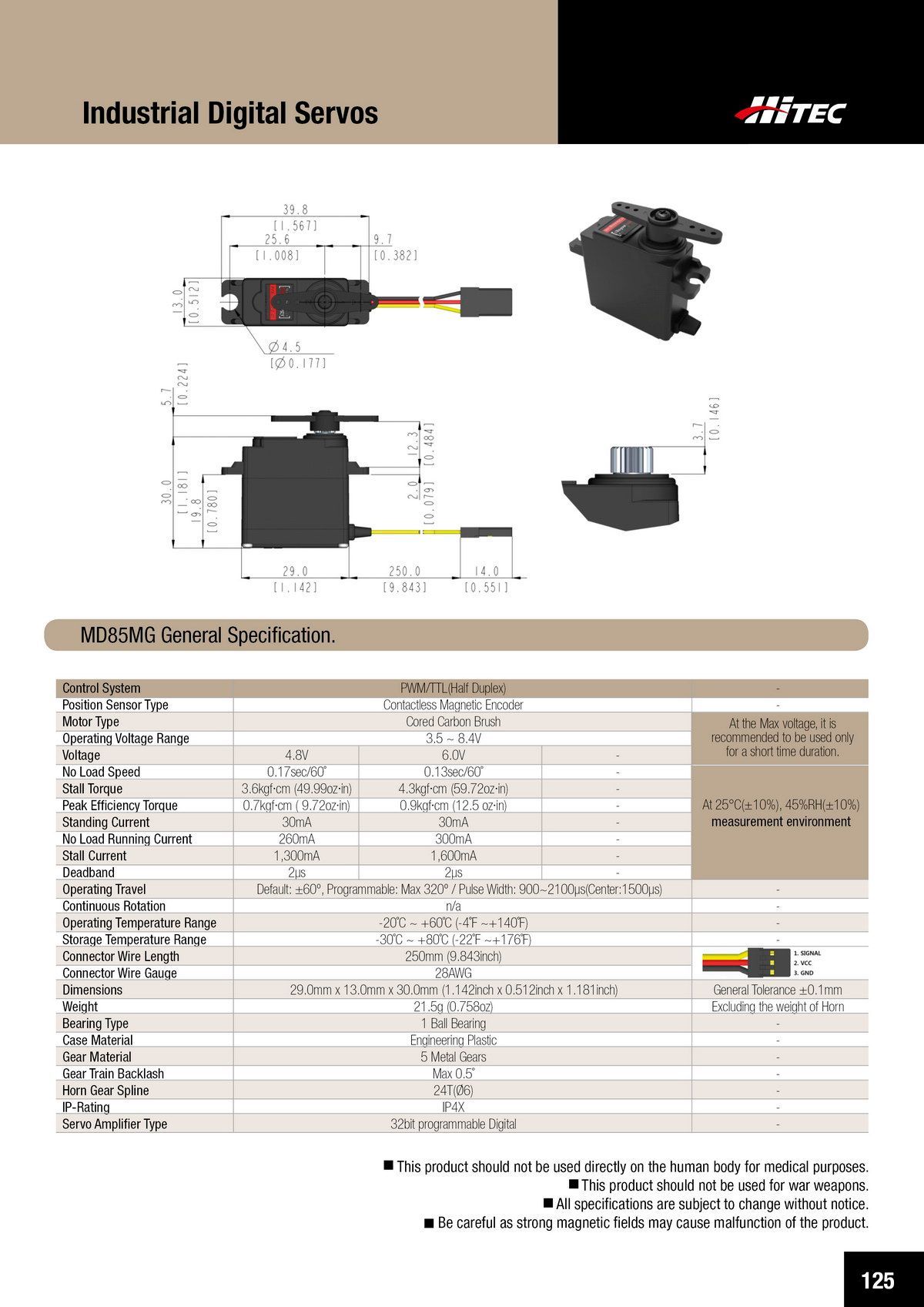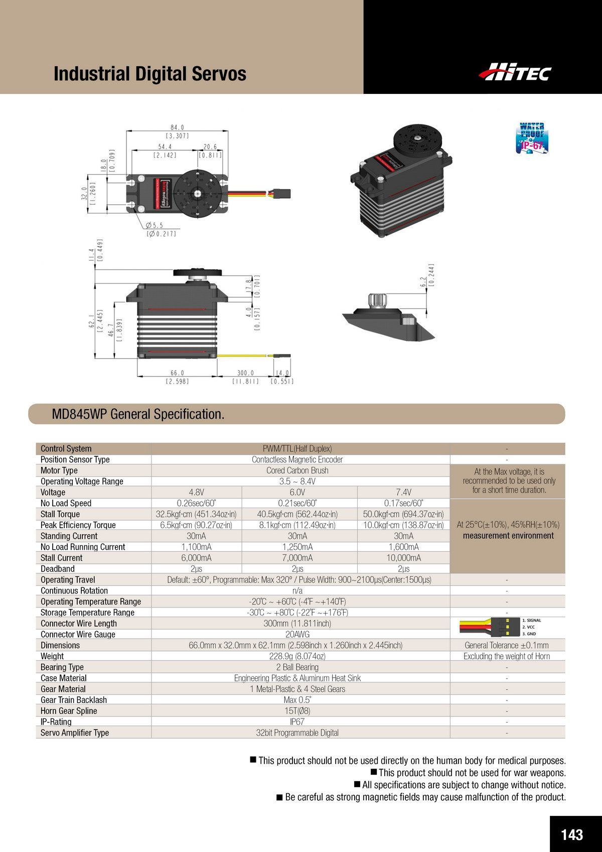 PDF DOWNLOAD21mm, Brushless, Low Profile, High Voltage, Steel Gear, Waterproof Actuator (7.4V)