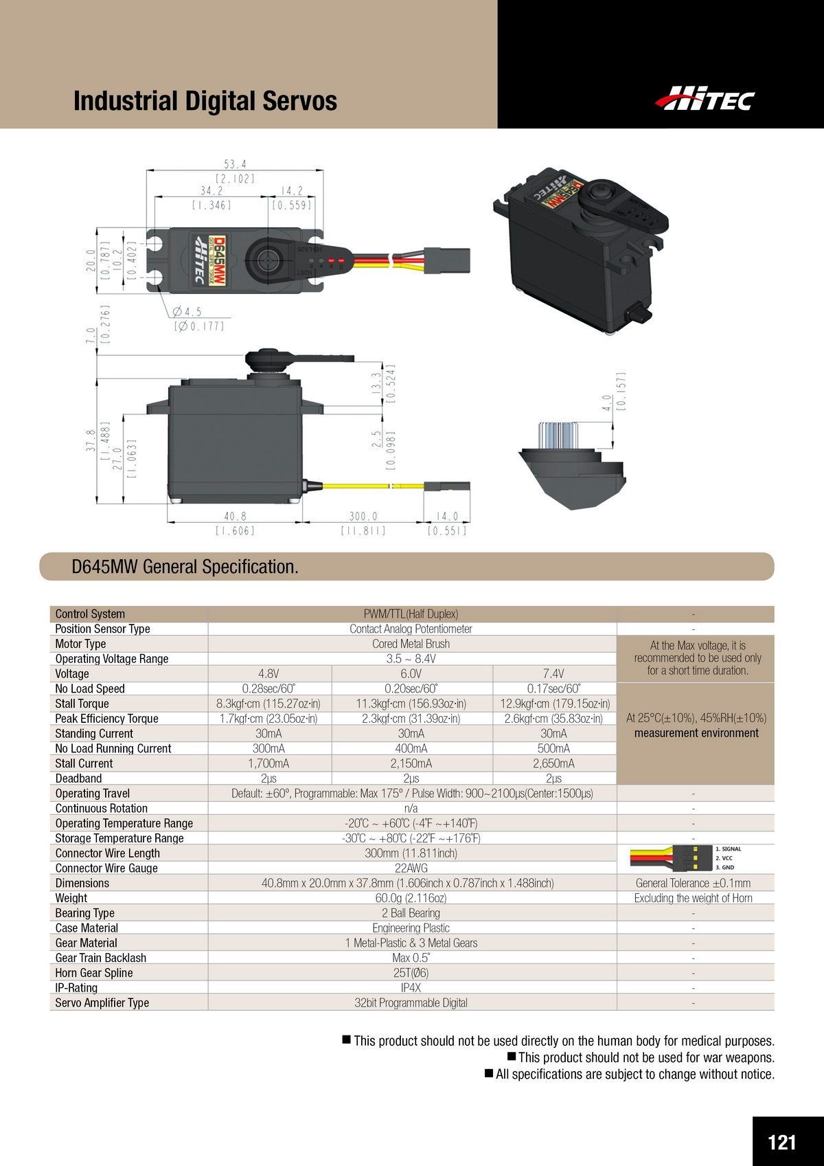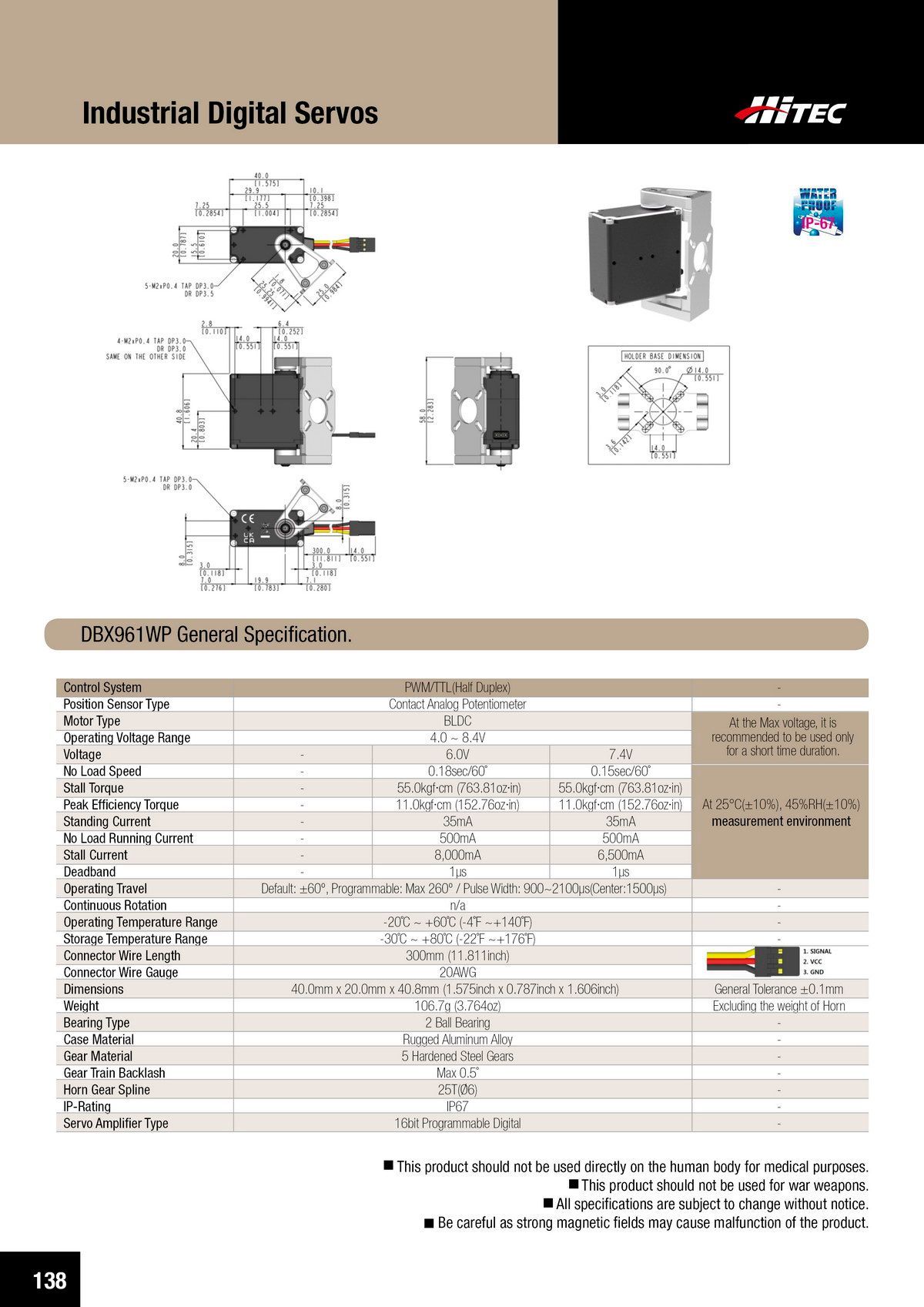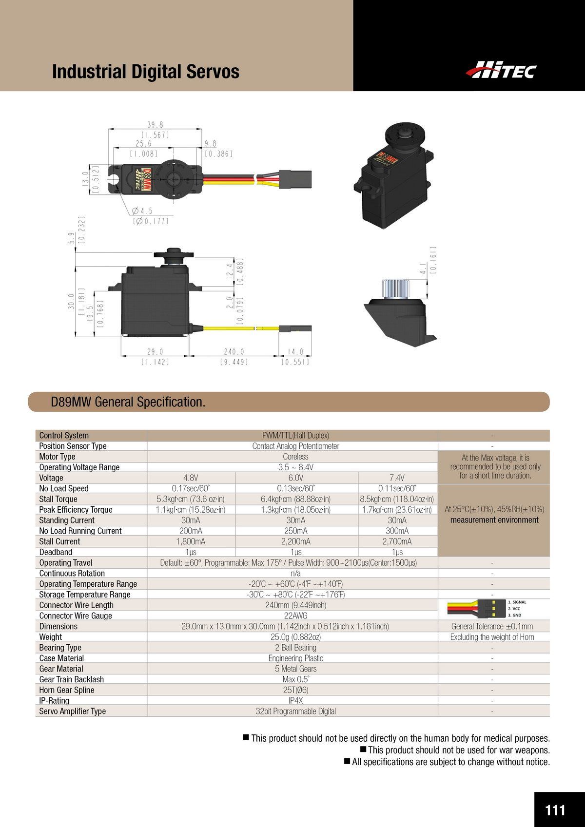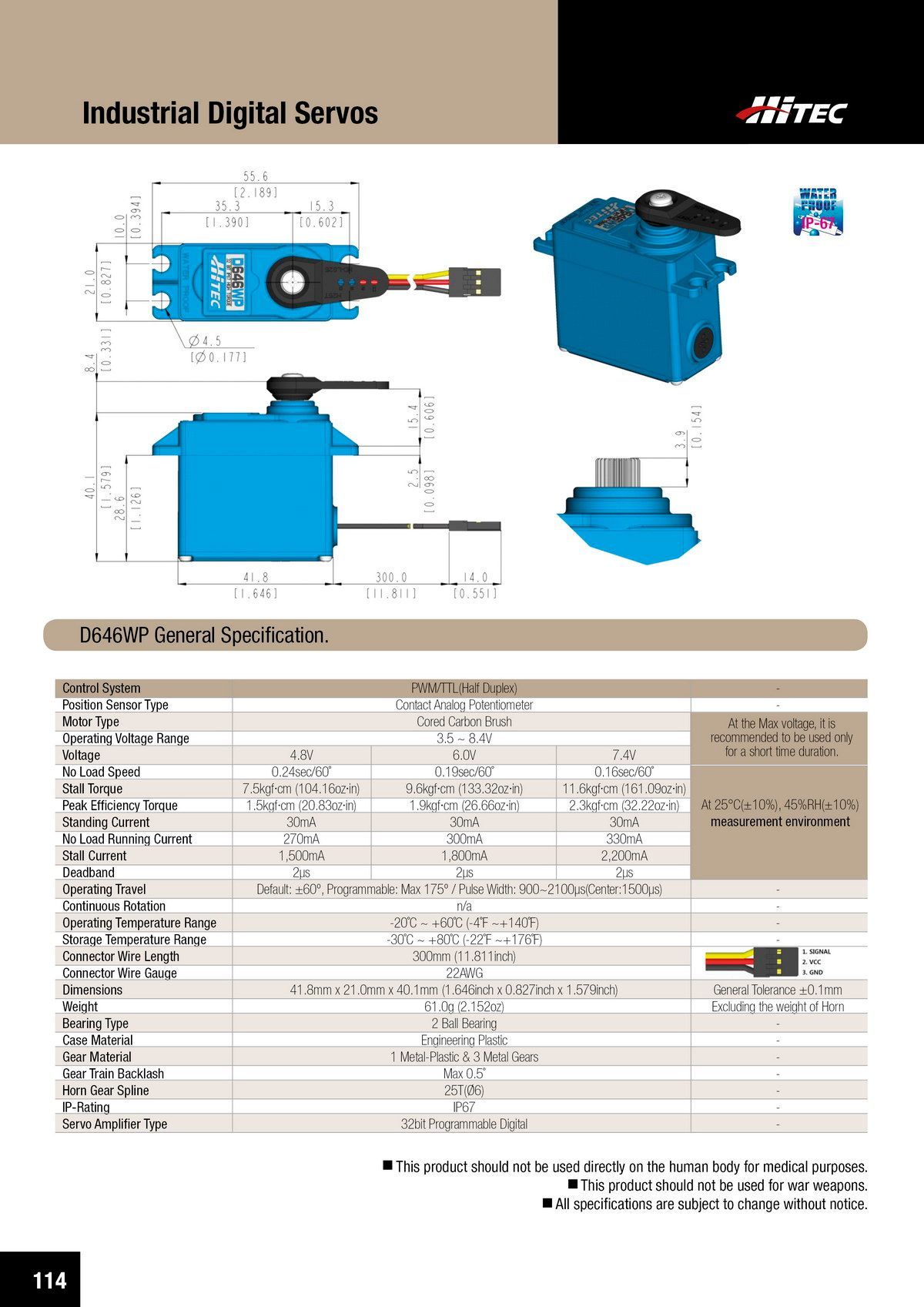 PDF DOWNLOAD21mm, Brushless, Low Profile, High Voltage, Steel Gear, Waterproof Actuator (7.4V)