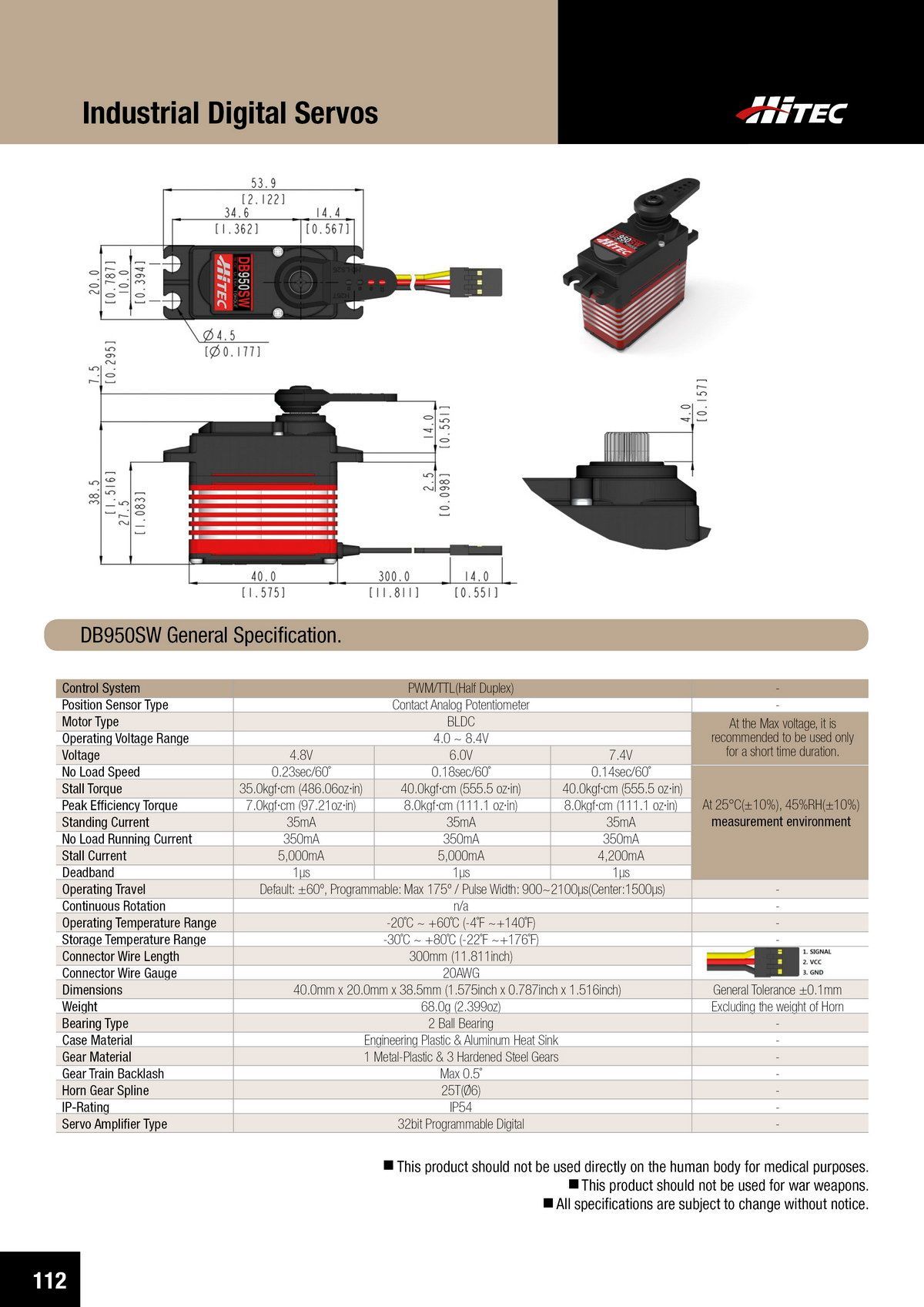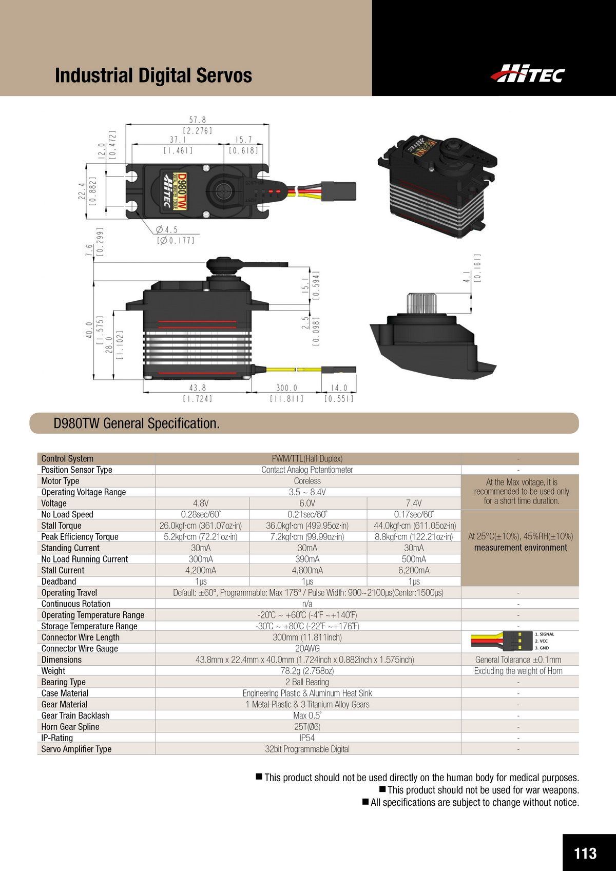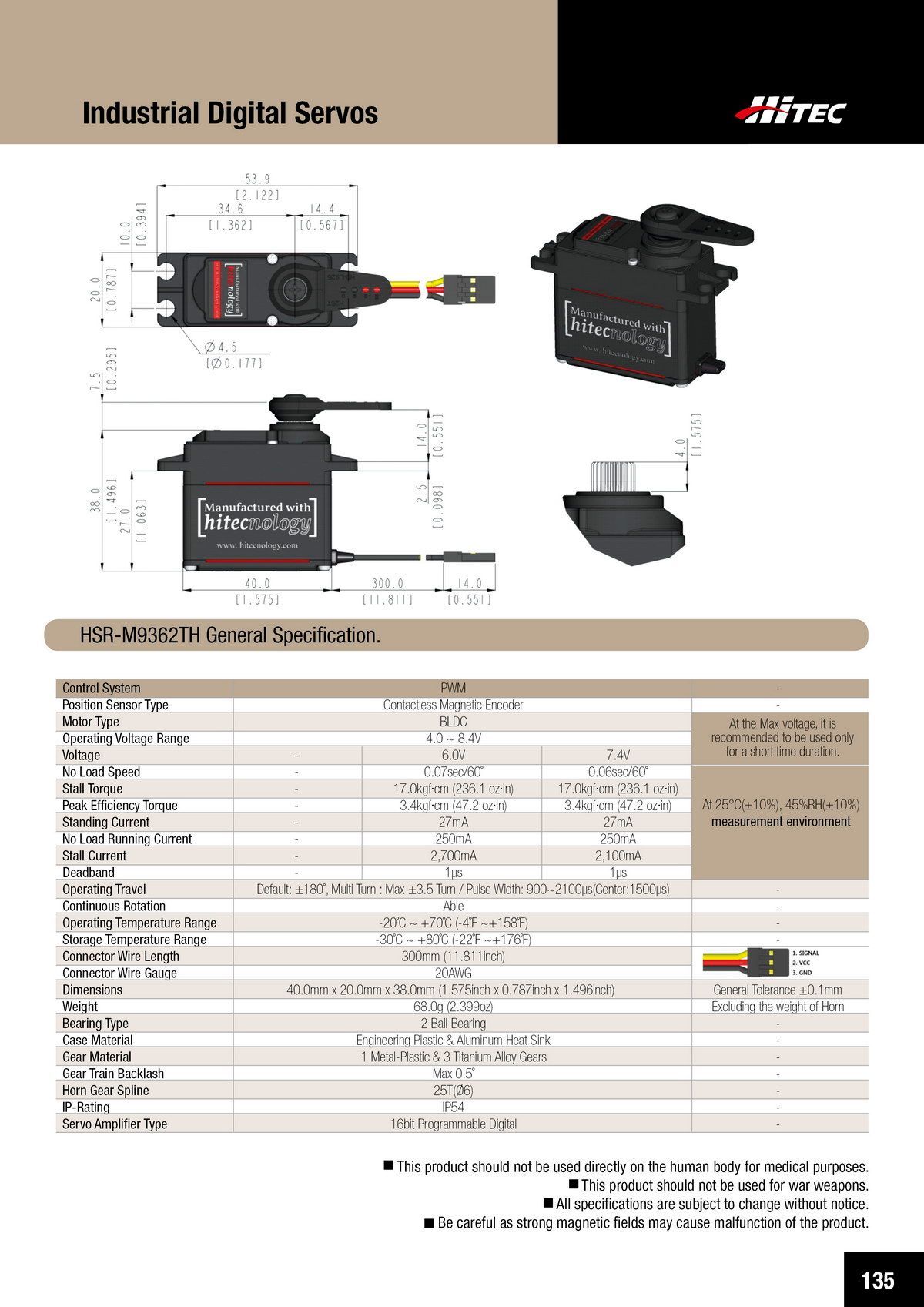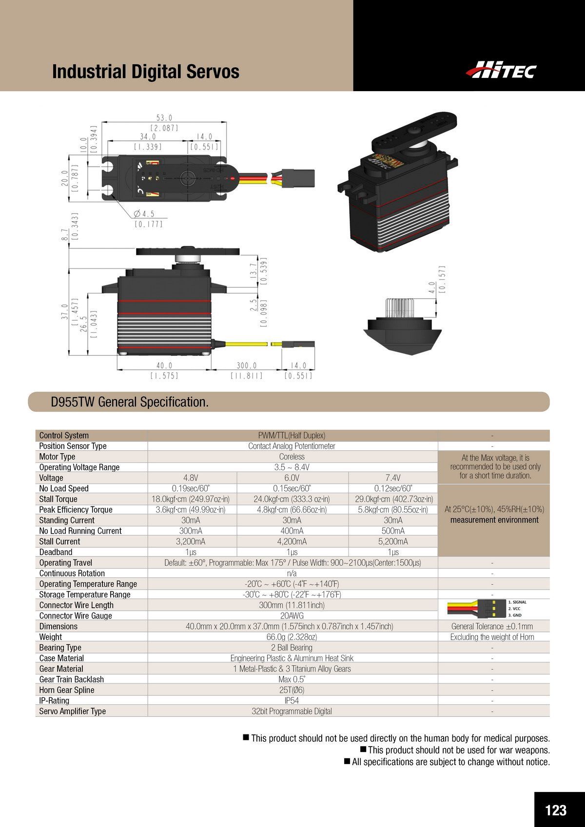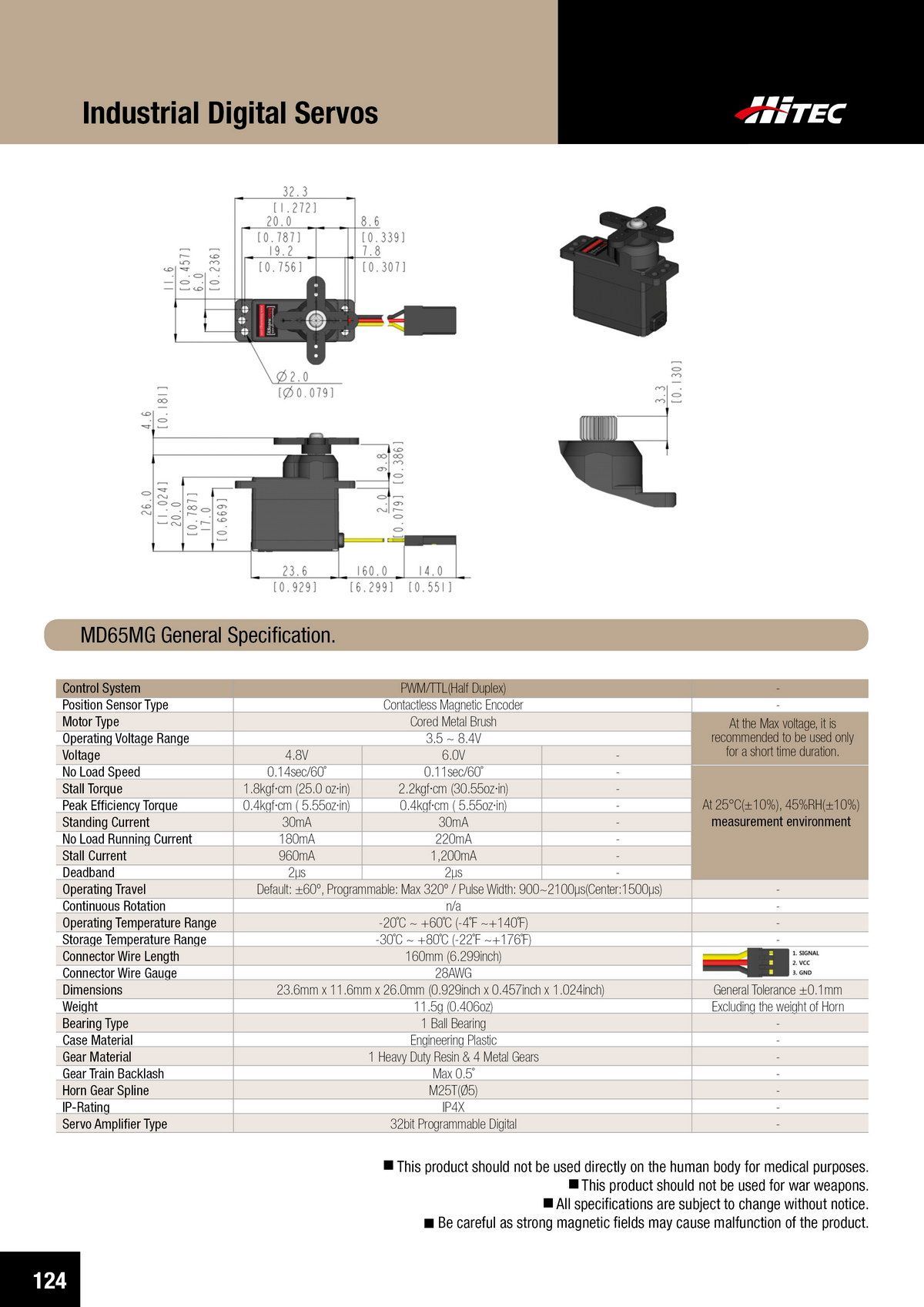PDF DOWNLOAD20mm, Brushless, High Voltage, Ultra Torque, Titanium Gear Actuator (7.4V)