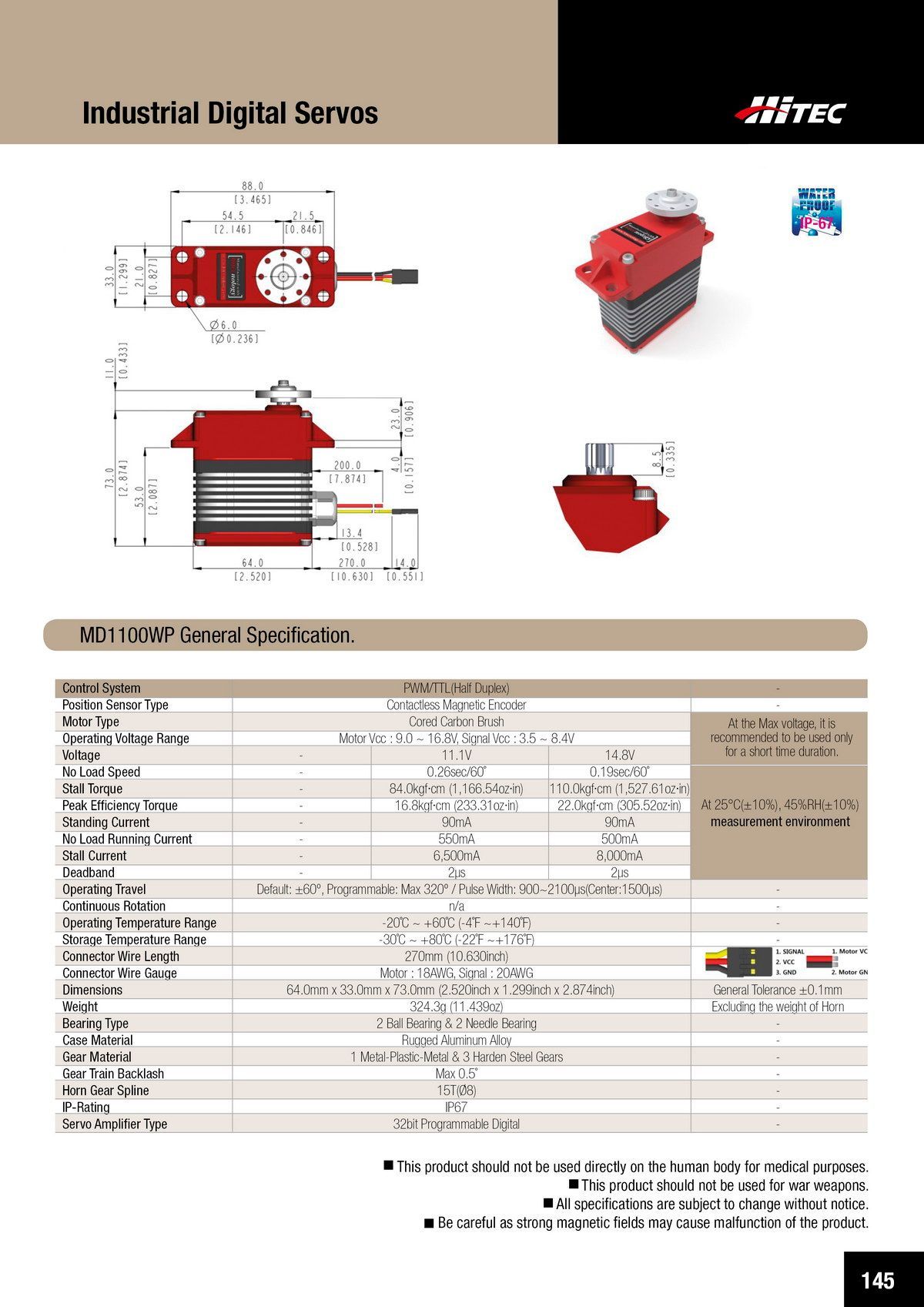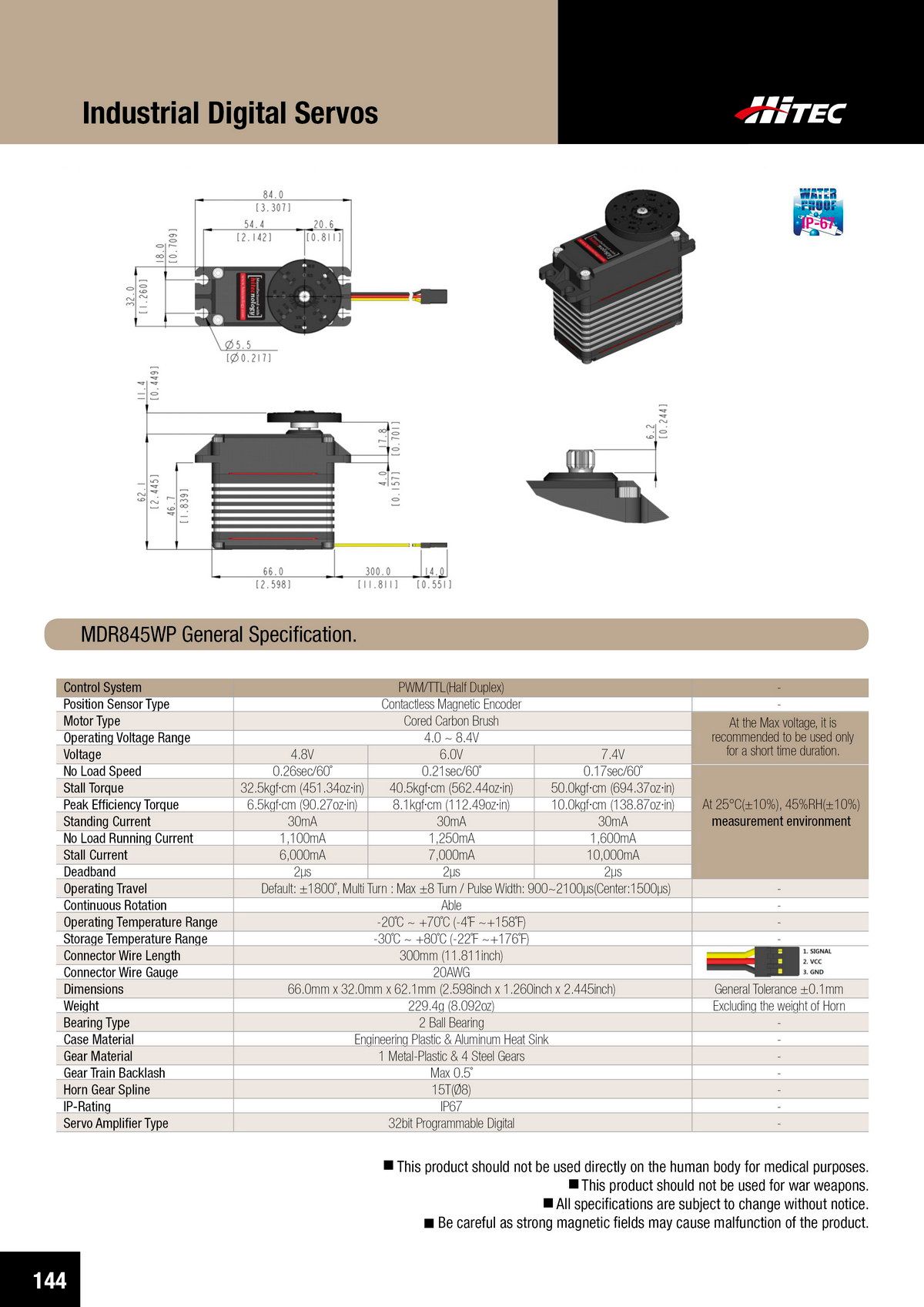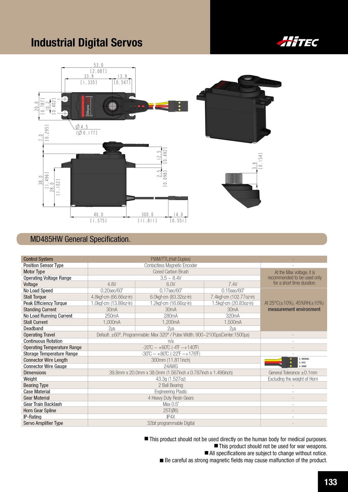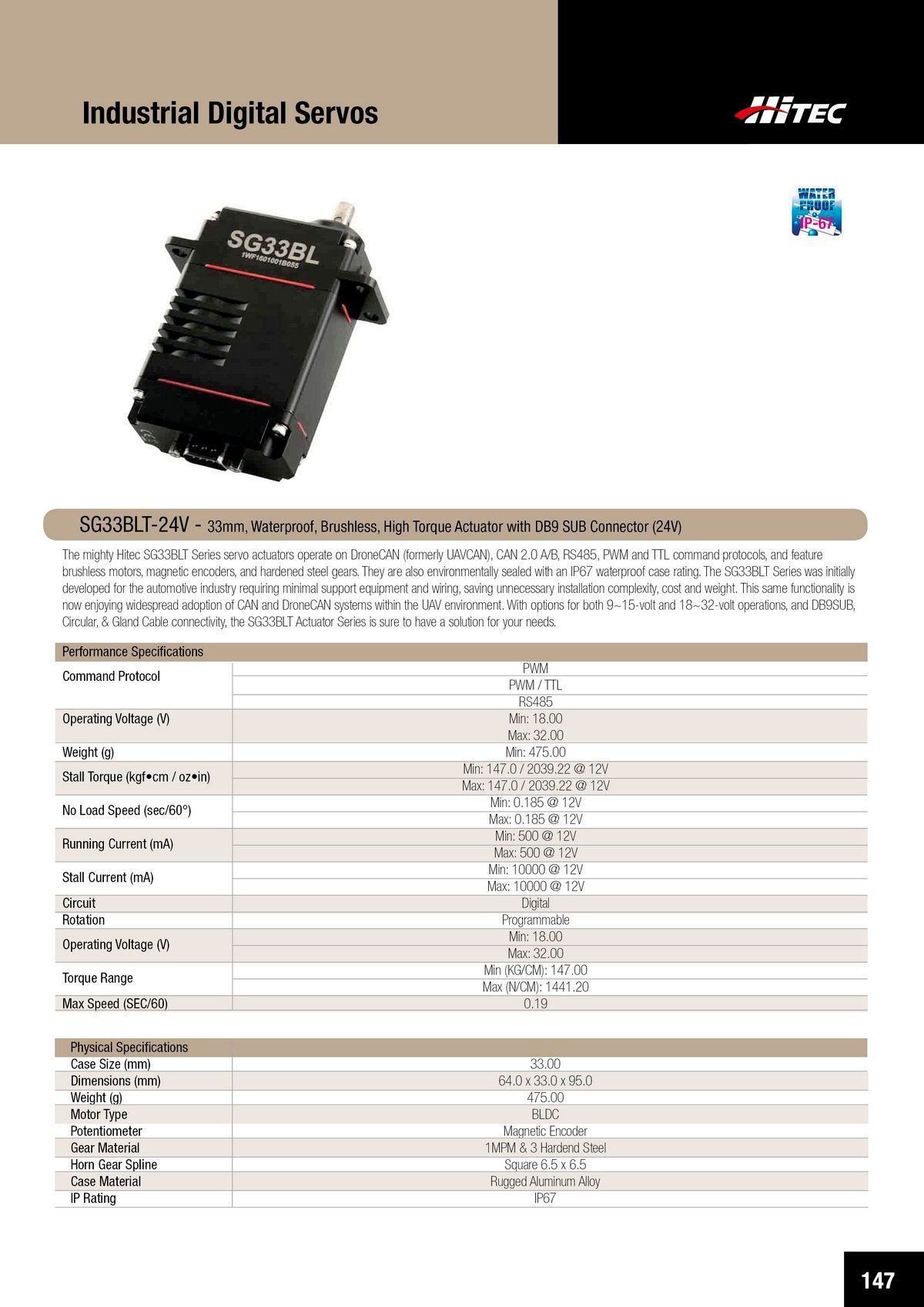 PDF DOWNLOAD33mm, Waterproof, DC Cored, Metal Case, Titanium Gear Actuator (14.8V)