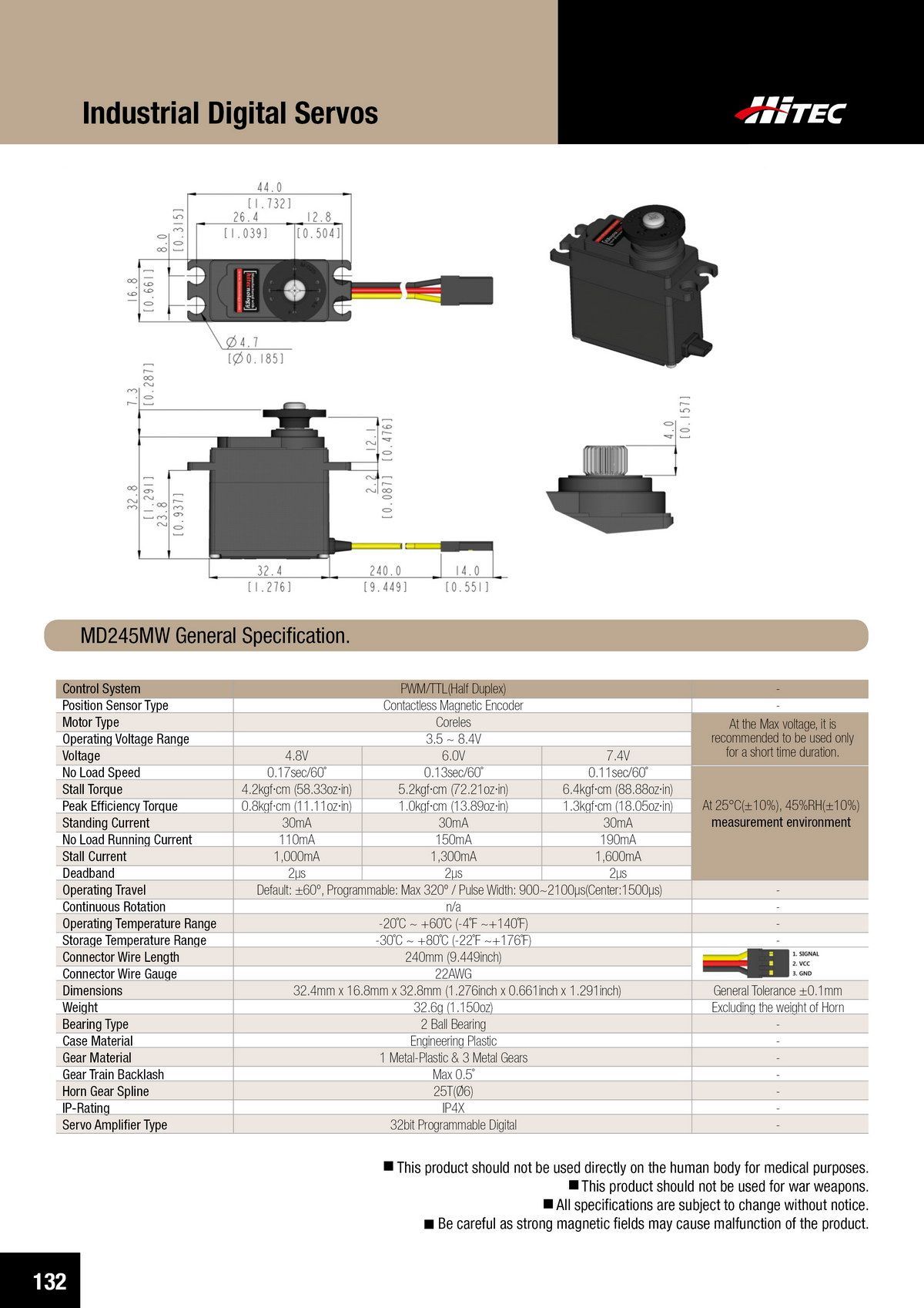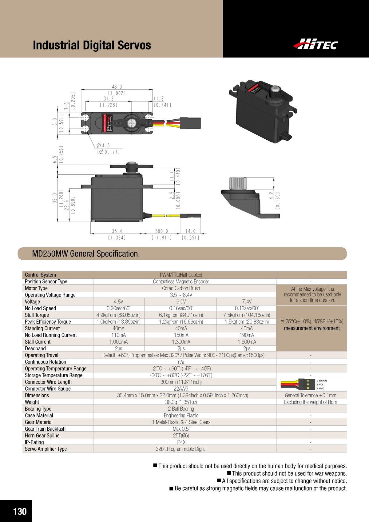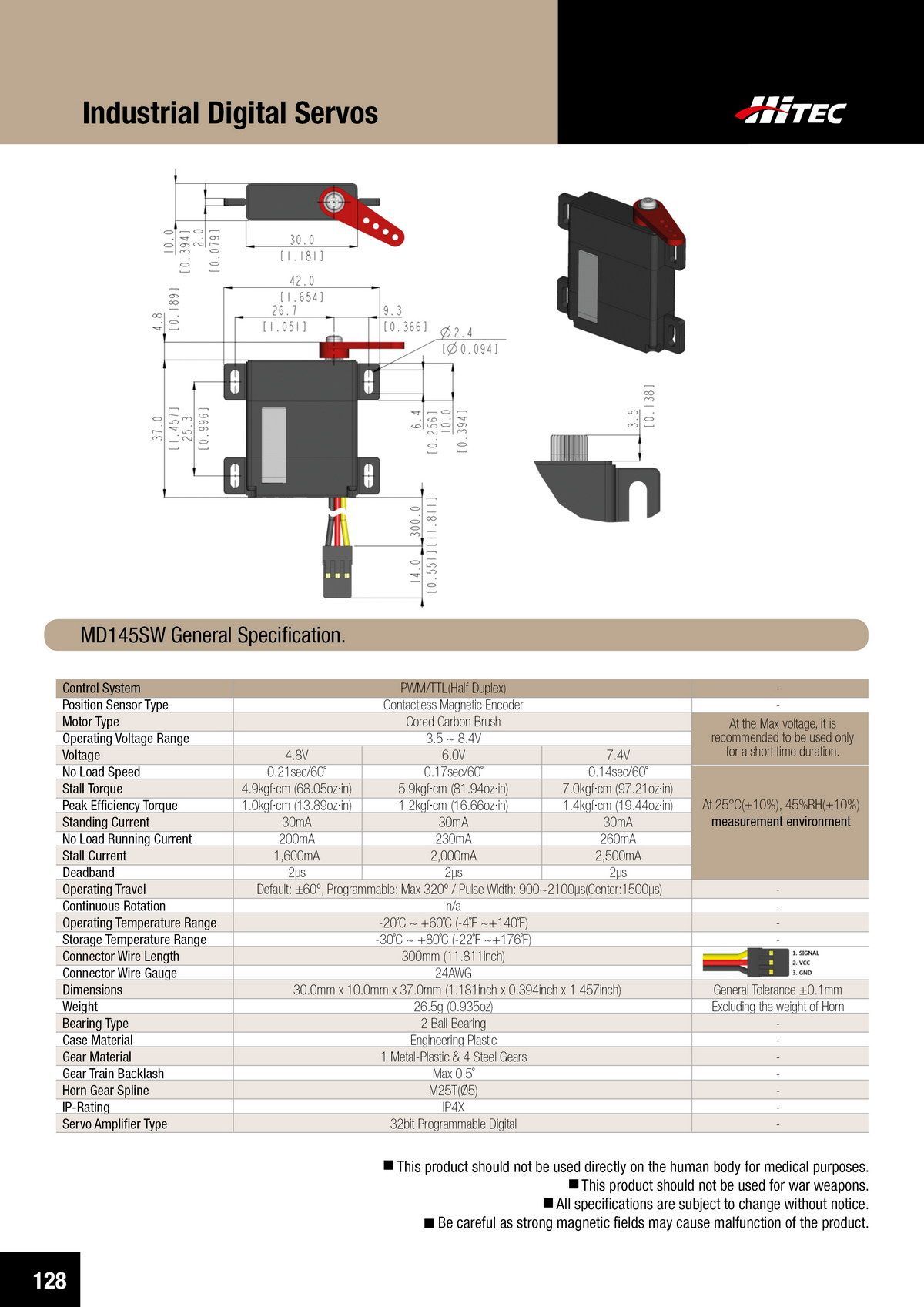 PDF DOWNLOAD33mm, Waterproof, DC Cored, Metal Case, Titanium Gear Actuator (14.8V)
