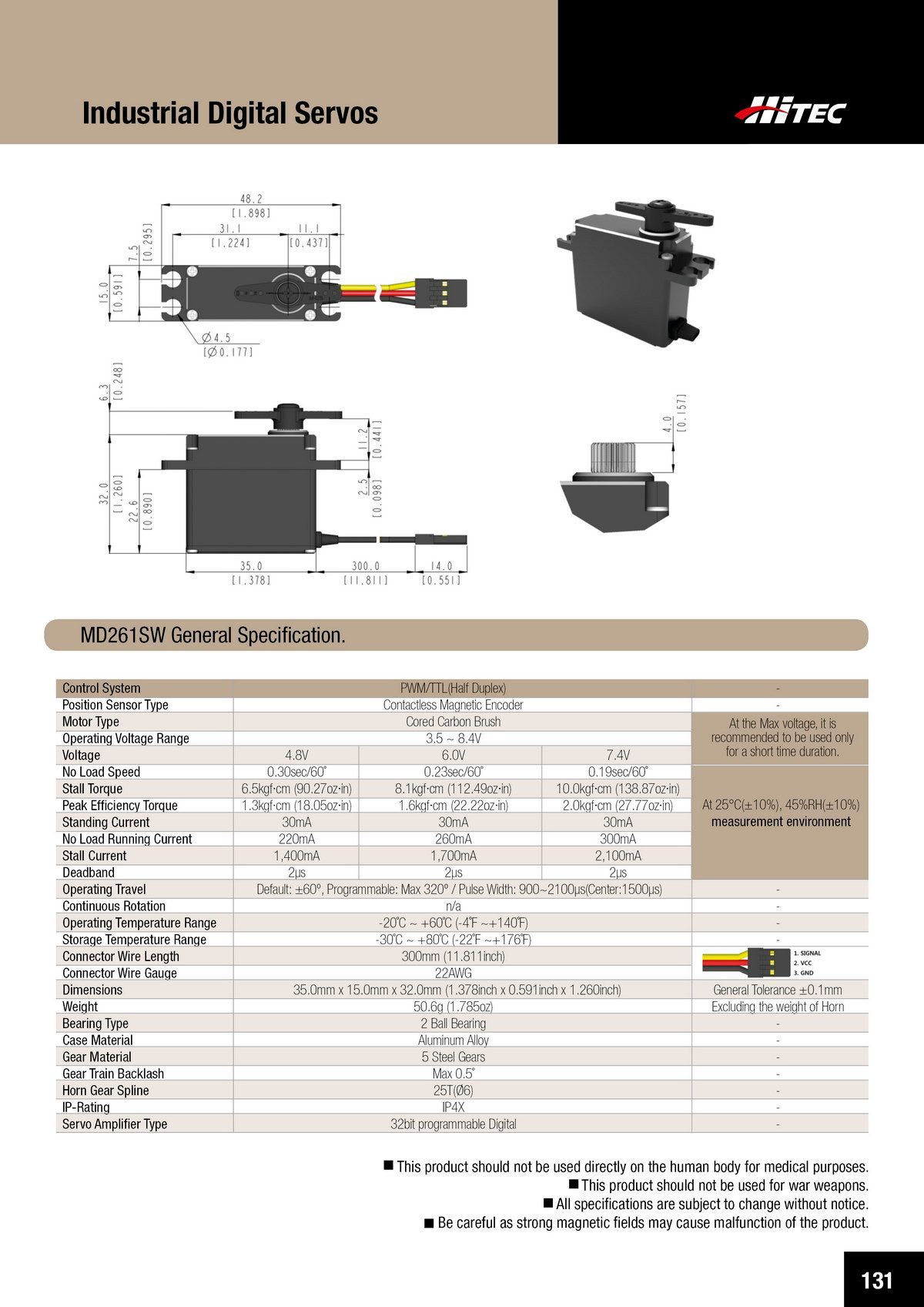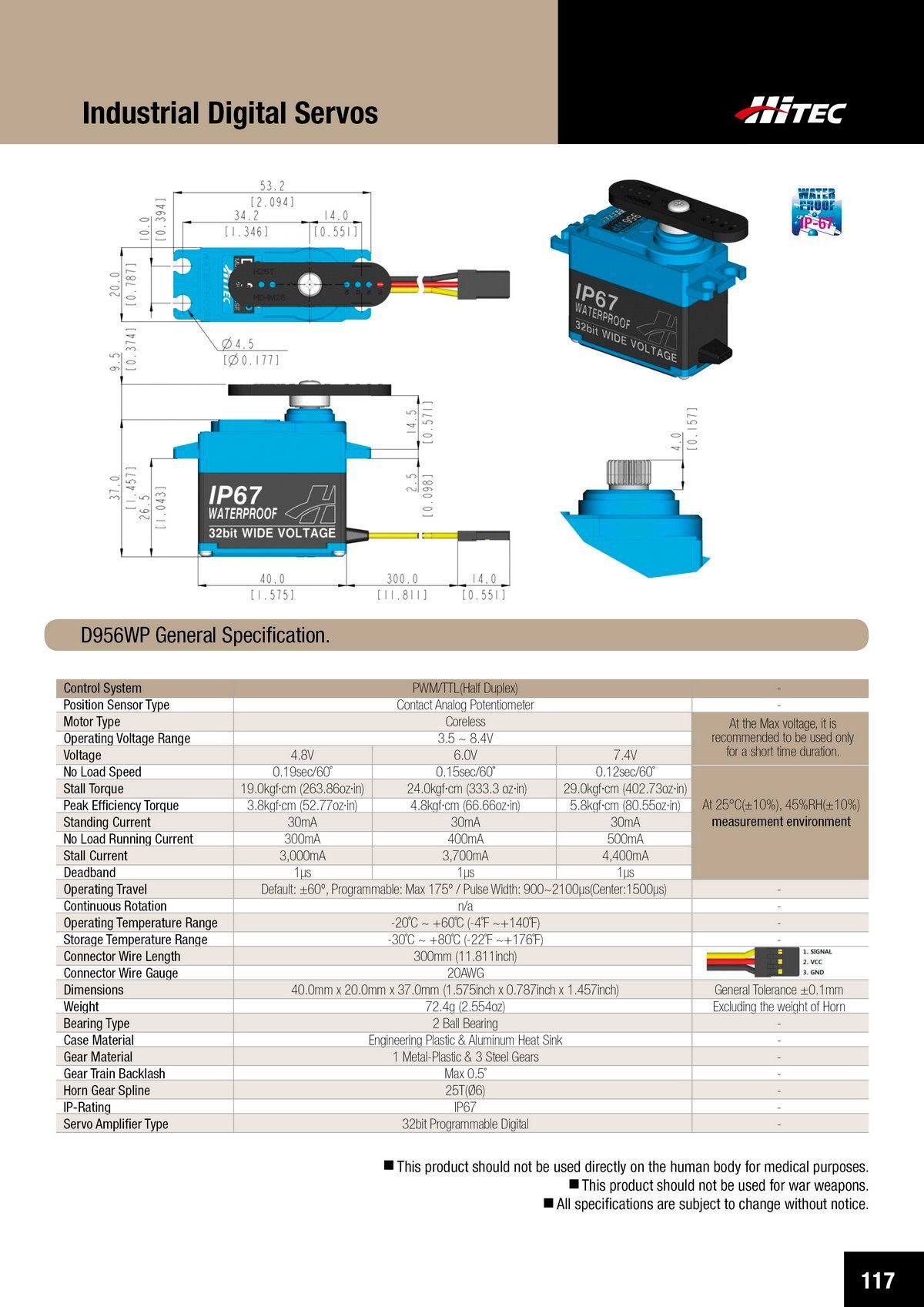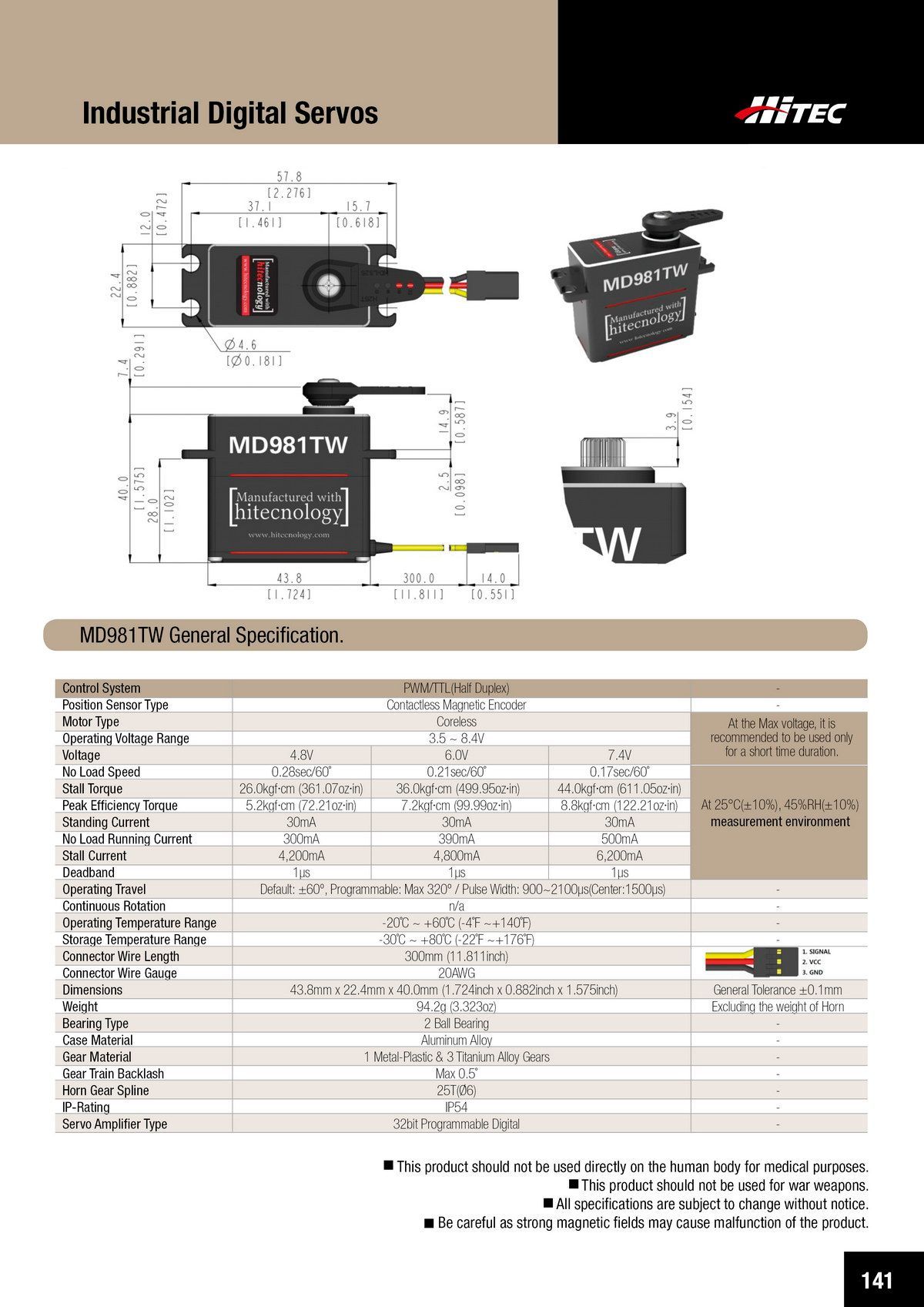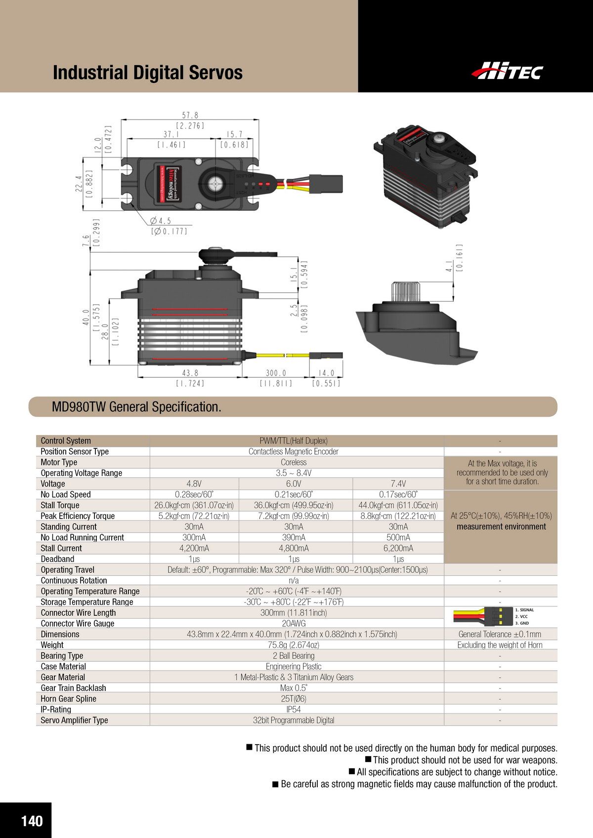 PDF DOWNLOAD33mm, Waterproof, DC Cored, Metal Case, Titanium Gear Actuator (14.8V)