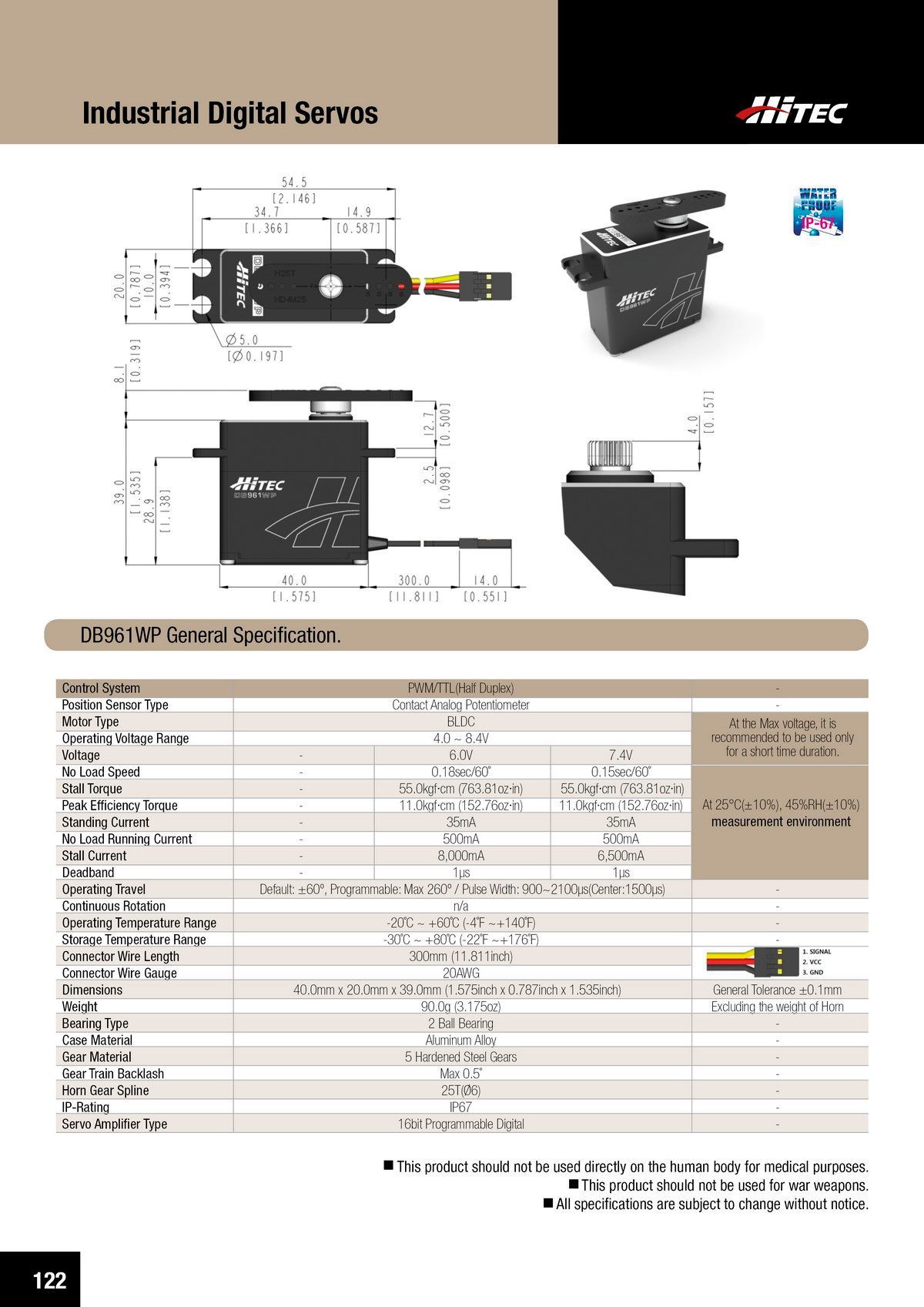 PDF DOWNLOAD20mm, High Speed, Brushless, Hardened Steel Gear, Waterproof Actuator (7.4V)
