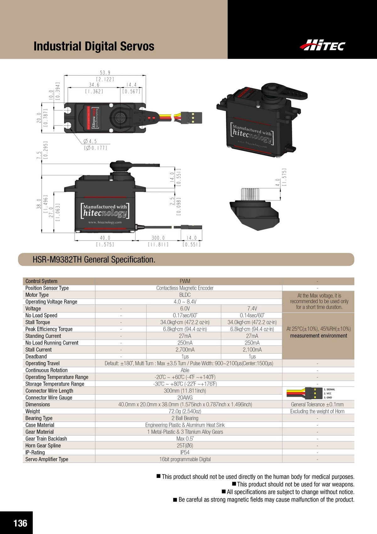 PDF DOWNLOAD20mm, 360º, Brushless, High Voltage, Titanium Gear Actuator (7.4V)