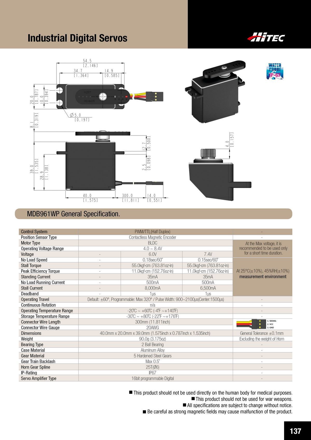 PDF DOWNLOAD30mm, Waterproof, Brushless, Metal Case, Steel Gear Actuator (7.4V)